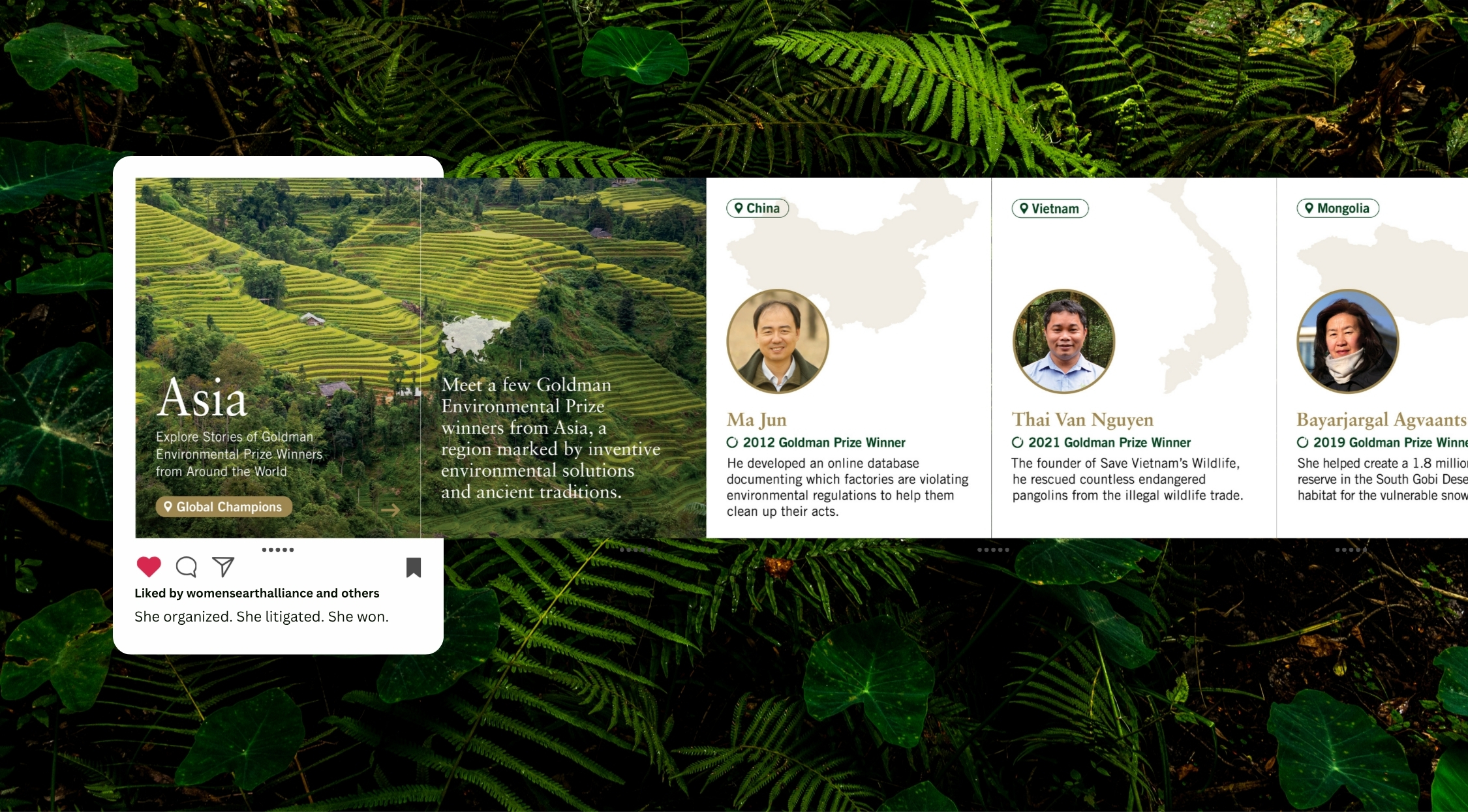 I’ve had the opportunity to collaborate with the Goldman Environmental Prize, a San Francisco–based nonprofit that honors and amplifies the work of grassroots environmental activists from around the world. Their mission is to inspire global action in protecting our planet.